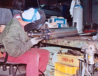 | オリジナル「エグゾーストシステム」、各部「補強/対策」作業では別の「工作工房」へ移る事になる。最初にも紹介したが、オーナー・ドライバーの要望でこれから製作する「エグゾーストシステム」では |